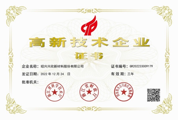 紹興興欣新材料股份有限公司成立于2002年06月27日,占地面積122畝,位于杭州灣上虞經(jīng)濟技術(shù)開發(fā)區(qū)拓展路2號,現(xiàn)有職工200余人,專業(yè)技術(shù)人員50余人;博士、碩士研究生30余人組成的一支知識型、專業(yè)化的技術(shù)科研團隊。公司面向全球市場,專業(yè)開發(fā)電子化學品、環(huán)保化學品、醫(yī)藥中間體、高分子材料等先進新材料重點領(lǐng)域的省級科技型企業(yè);建有浙江上虞、安徽東至兩個生產(chǎn)基地。目前為“國家高新技術(shù)企業(yè)”、浙江省“隱形冠軍”企業(yè)、浙江省專精特新中小企業(yè);建有“省級”研究開發(fā)中心,共建天津大學浙江紹興研究院電子化學品研發(fā)中心。